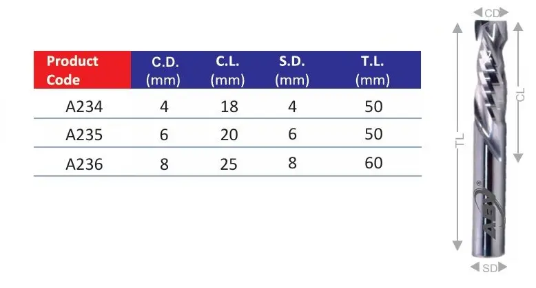 An Up-Down Cut Spiral Endmill (widely known as a Compression Bit) is the ultimate high-performance tool for the woodworking industry. It combines an Up-cut spiral at the bottom tip with a Down-cut spiral on the remaining length of the tool.